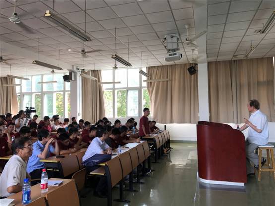 9月8日下午,石来德教授为本科新生讲授《中国制造2025》,学校关工委常务组成员乔建新老师,与学院党委副书记宋木生老师、本科生党总支副书记钱偲老师、团委书记魏嘉轩老师共同参加讲座。